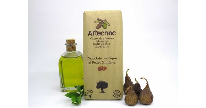 Pero los que aquí nos interesan son sus Higos con chocolate, algo a priori nada novedoso; pero todo cambia si hacemos que los higos naturales dejen de estar secos macerándolos con un vino Pedro Ximénez denominación de origen, junto con un chocolate cremoso -mínimo 65%- y de sabor equilibrado con nuestro Aceite de oliva virgen extra (AOVE, mínimo 5%).