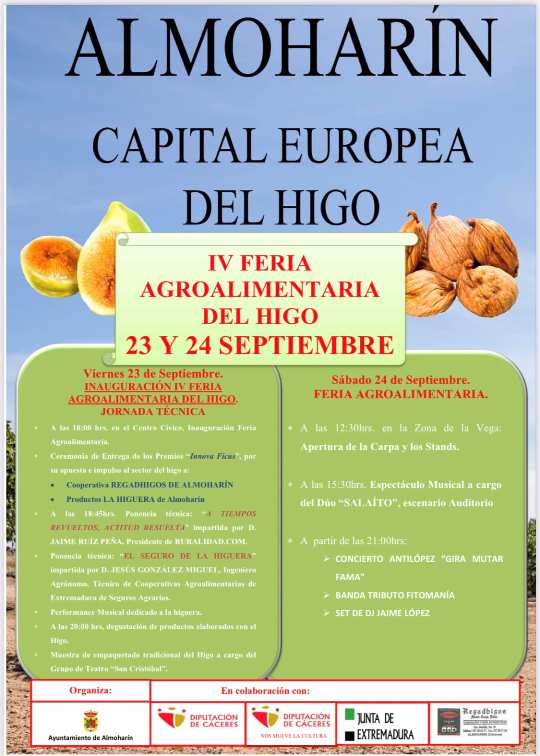 Tras la pandemia, la Feria Agroalimentaria del Higo de Almoharín regresa en su cuarta edición los próximos días 23 y 24 de Septiembre.