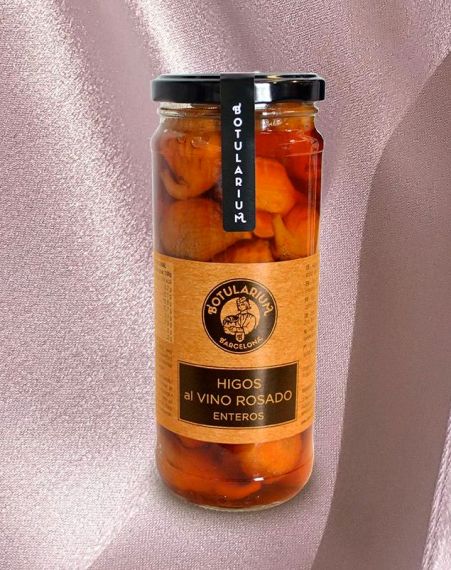 Los higos al vino rosado Botularium se presentan enteros en un tarro de cristal transparente. Elaborados a partir de frutos sanos de primera calidad y de manera artesanal, tienen una tonalidad marrón y un sabor dulce. Los higos contienen vitaminas A y C, así como también calcio, potasio, fósforo y magnesio. Se acostumbra a tomar solos, como postre, pero se pueden utilizar para preparar otros platos más elaborados.