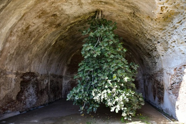 En unos antiguos baños termales romanos en Baia, Nápoles, una higuera crece al revés. Literalmente, boca abajo. Lo hace, además, en un arco en el que solo hay piedra. Según los botánicos, desafía toda lógica… y también a la gravedad.