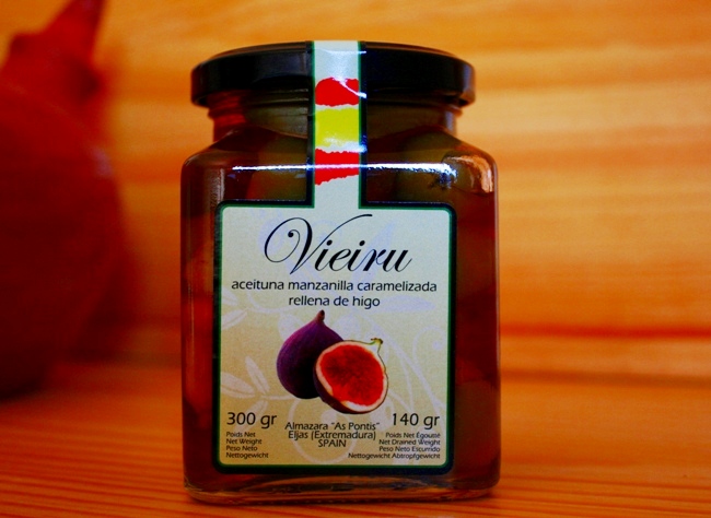 Pero además, la Almazara As Pontis, ha elaborado un producto gourmet de calidad, mezclando la tradicional Manzanilla Cacereña y el higo, dos productos típicos de la Sierra de Gata, que juntos, dan lugar a un sabor novedoso y sorprendente: Aceitunas de la variedad Manzanilla Cacereña de la Sierra de Gata, caramelizadas, rellenas de higo dulce. Un sabor tradicional en un producto innovador.