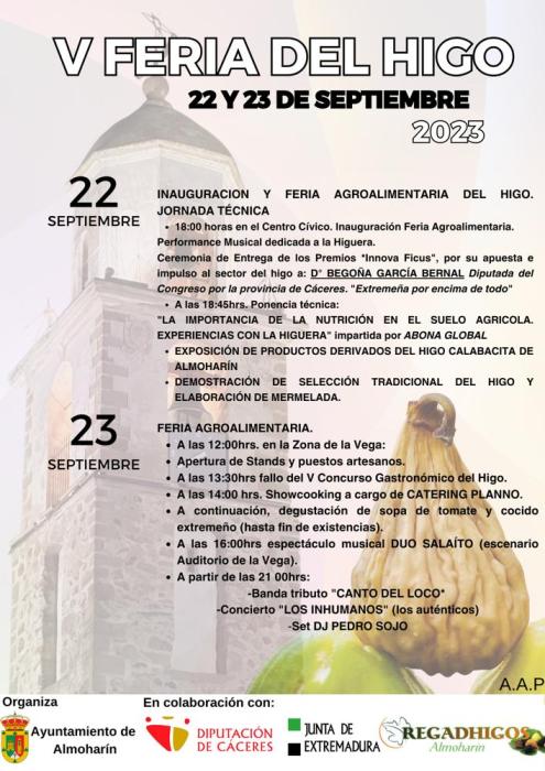 La localidad cacereña de Almoharín, mayor productora de España de higo seco, celebra la VII edición de su Feria Agroalimentaria del Higo los días 19,20 y 21 de Septiembre con un amplio abanico de actividades de todo tipo. La Feria comenzará como es costumbre con sus jornadas técnicas el viernes 19 de septiembre desde las 18,30 en el Centro Cívico de la localidad. Con un homenaje al cultivo de la higuera y la representación de una pieza clásica creada por la artista Marta Lozano dentro del proyecto “Ensemble la ruralité”.