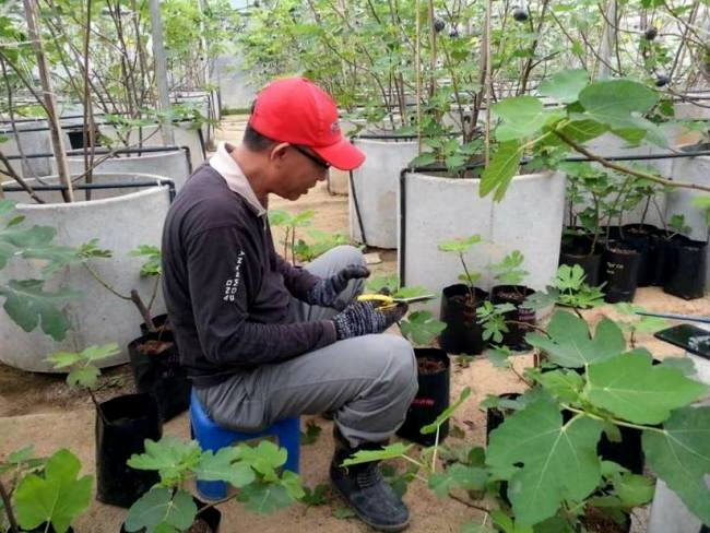 En su búsqueda para desarrollar el cultivo de la higuera, Ridzuan Abdullah está experimentando con diversos métodos de cultivo, incluyendo cultivos hidropónicos y otros sistemas que no utilizan tierra. También ha investigado los mejores métodos de poda, fertilización y riego. Ha aprendido que el riego ha de ser lento y profundo, para que las raíces puedan absorberlo y mantenerse frescas.