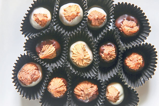 Mutiara Figs Garden elabora toda una gama de higos bañados en chocolate, a mano. Tienen dos variedades; una con chocolate negro y otra con chocolate blanco. Aunque también pueden ajustar el chocolate blanco sumergiendo los higos con un poco de colorante alimentario para crear tonos pastel, como el rosa, azul o morado.