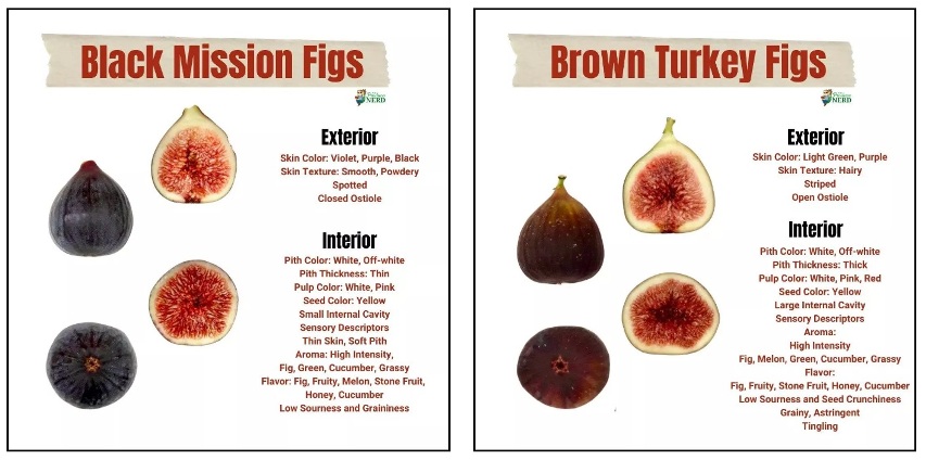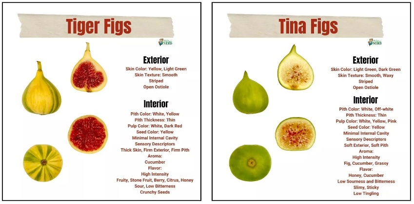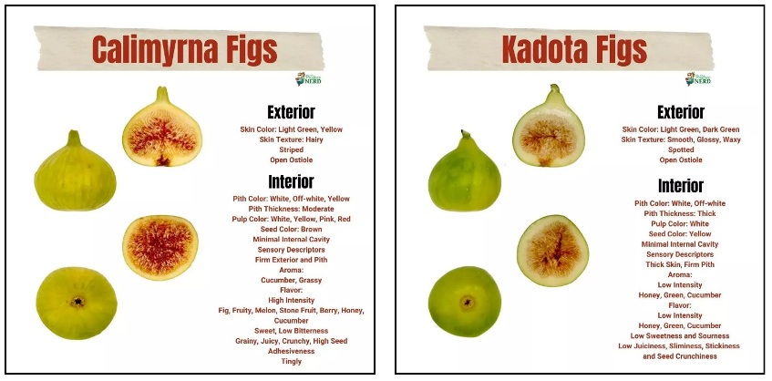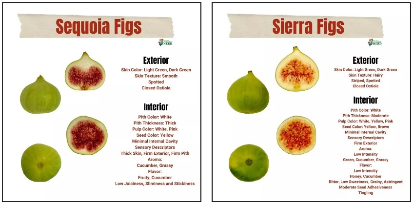A continuación he incluido los descriptores sensoriales específicos de cada cultivar. Para mi proyecto de maestría, tuve un panel sensorial entrenado para higos frescos y secos y estos fueron los factores que determinaron.