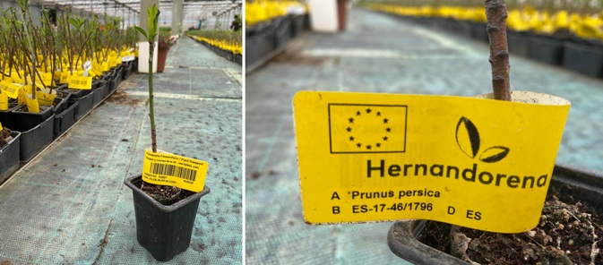 Junto a este control integrado de plaga, Viveros Hernandorena garantiza la sanidad vegetal a través del etiquetado de la planta, una etiqueta unitaria donde no solo se asegura la trazabilidad, y la autenticidad varietal, sino que también engloba el pasaporte fitosanitario, la máxima certificación para la exportación de planta, avalada y otorgada por las administraciones competentes. “Hemos sido pioneros en el etiquetado de la planta frutal para agricultura”, Rosa Hernandorena, directora comercial de Viveros Hernandorena.