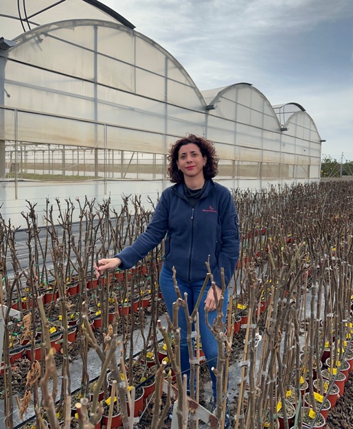Desde el año 2018, el vivero cuenta con una plantación de árboles madre en una finca propia, para asegurarse la máxima calidad del estaquillado. El proceso de plantación comienza con el estaquillado con alveolos en bandeja y después el enraizado de estaquilla. De ahí se pasa al trasplante en maceta de 1,5 litros. Este formato permite a la planta pasar el verano en el vivero perfectamente. Normalmente la planta se vende con una altura de un metro a 1,20 cm. “Para fincas grandes -asegura Rosa Hernandorena– también ofertamos el formato de planta en maceta de 1 litro sobre pedido, que se queda entutorada con una altura de entre 40 a 60 cm. Nuestro vivero se adapta a todo tipo de agricultores y pedidos, sean grandes o pequeños”.